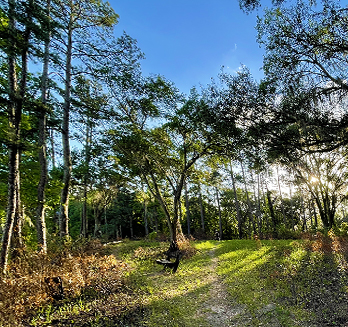 South Connector, aka “Silk” (intermediate) – This MTB trail connects the southern portion of Lake Overstreet’s perimeter trail to the uplands ravine trails near the Forest Meadows trailhead at the park’s west boundary. Riders will experience a twisting and winding ride on through trails forested with oaks, pines, magnolias, and even bamboo!